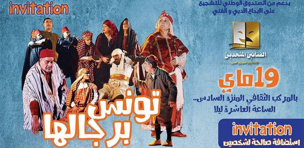 21 ماي 2018العرض الاول للعمل المسرحي الجديد «تونس برجالها» سيكون يوم 18 ماي 2018 بالمركز الثقافي المنزه السادس.