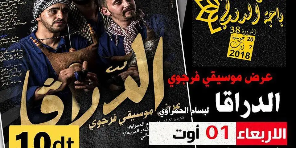 31 جويلية 2018يستعد نوفل الورتاني وكل فريق الدراقا للعرض الحدث غدا الأربعاء 1 أوت 2018 في مهرجان باجة الدولي في دورته 38 …هذا العرض يندرج ضمن سلسلة من العروض الصيفية لمسرحية الدراقا والتي كانت ناجحة واخرها كان عرضا مبهرا في مهرجان قابس الدولي ومهرجان بنان. وفي هذا السياق نشر نوفل الورتاني مقطع فيديو يجمعه بالممثلين وجه من خلاله رسالة الى جمهور باجة على طريقة الدراقا… “برشة ربوخ / برشة ضحك” في حكايات ينقلها 18 ممثل من عمق السجون التونسية الى ركح الدراقا …هي حكايات أغان تصور واقع المساجين محملة بوجع ما وقد يبكي المتفرج ولكن من شدة ضحكه …”ضحكة مخدومة” أو الضحكة الهادفة كما يحلو للبعض أن يصفها…