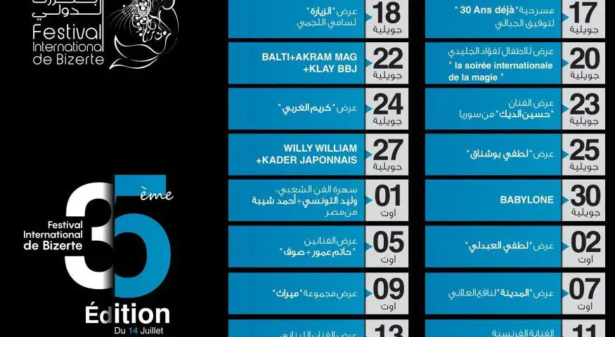Programme de la 35ème édition du Festival international de Bizerte :