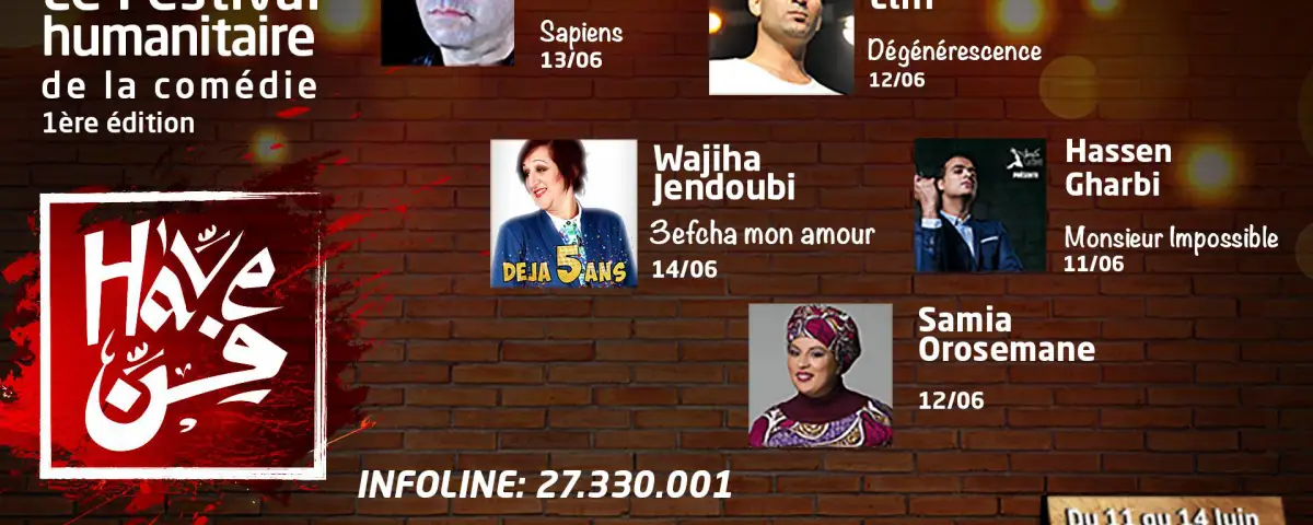 Les billets sont disponibles sur Teskerti.tn https://www.teskerti.tn/evenement/le-festical-humanitaire-de-la-comedie-1ere-edition/